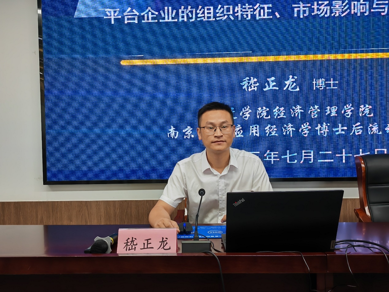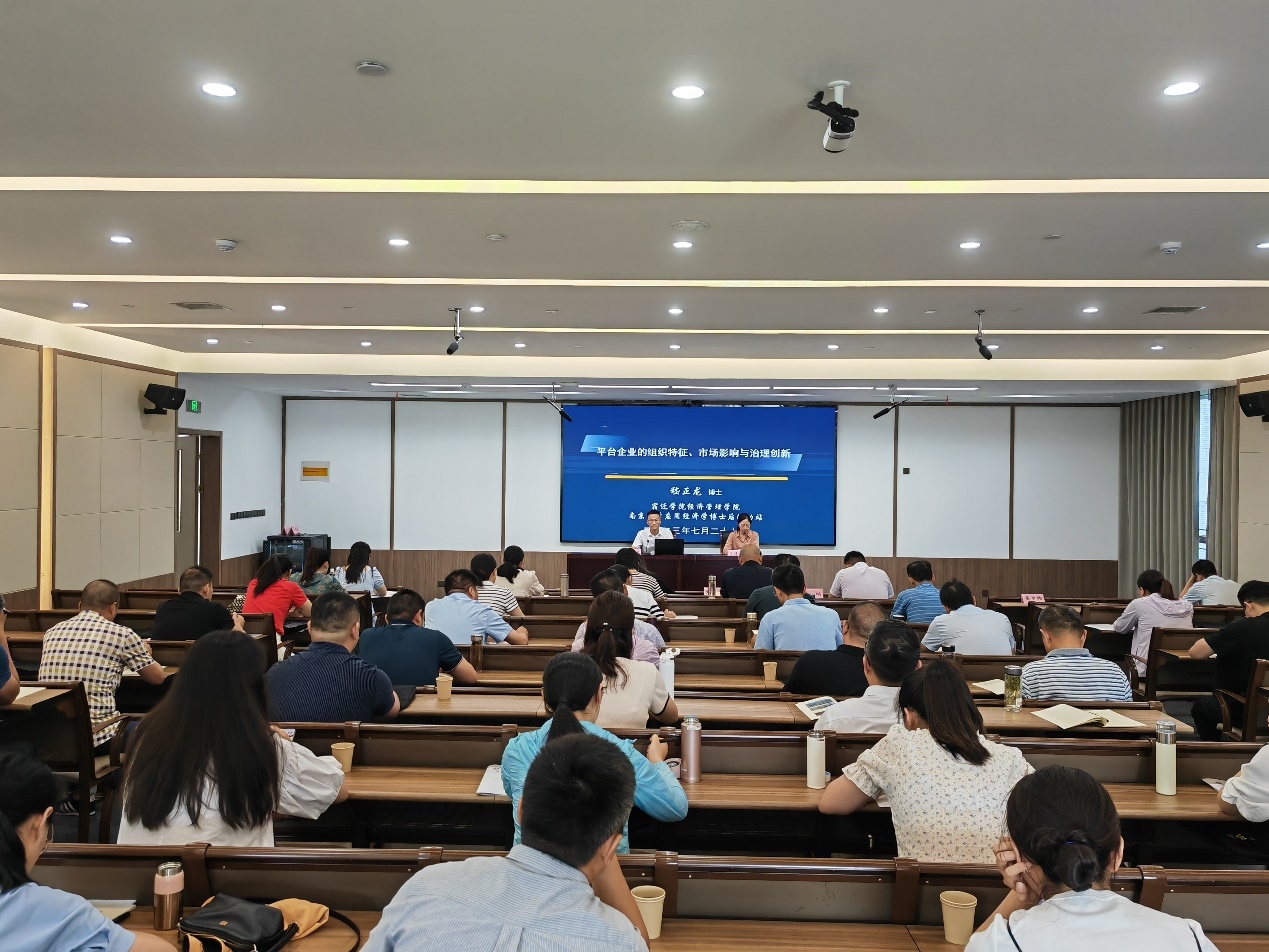2023年7月27日下午,我院嵇正龙博士在泗洪县大王庄干部教育中心为参加市委组织部举办的全市产业链党建工作专题培训班的新业态管理人员做题为《平台企业的组织特征、市场影响与治理创新》经济专题报告。