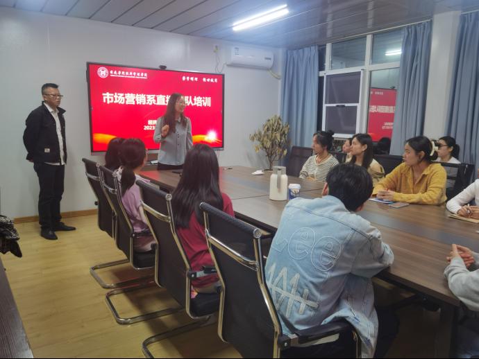 为充分发挥第二课堂的实践教学效用,丰富学生的学习体验,10月17日,市场营销系成功开展了直播团队培训活动。主讲人高慧老师结合新媒体运营理论深入剖析了视频号的底层运营逻辑,并通过直播实践案例分享对学生进行直播话术训练。