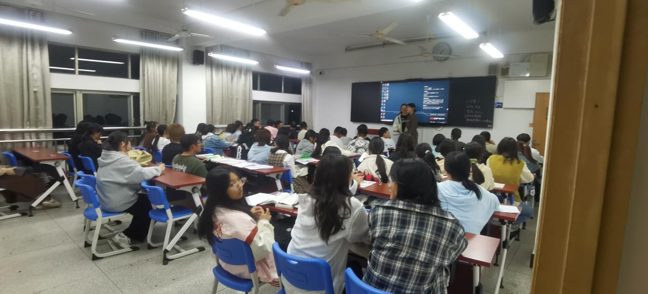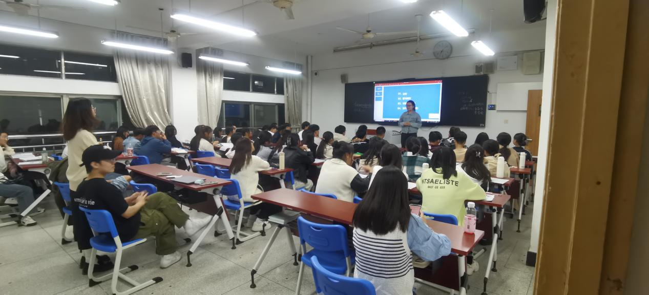 2023年10月15日晚,由大二学长学姐给大一同学分享如何学习英语四级的活动,在经管学院行政管理1班和行政管理2班举行。活动由行管系主任韩雪主任主持。