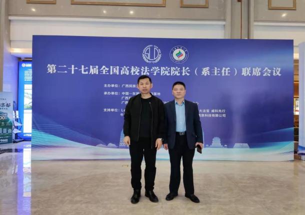 2023年11月17日至20日,第二十七届全国高校法学院院长(系主任)联席会议在广西壮族自治区南宁市召开。会议的主题为“新时代法学教育与法治人才培养”,会议由广西民族大学主办,我院法律系系主任尹维达与穆伯祥教授应邀宾参加会议。