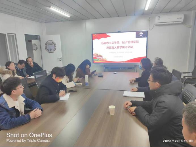 宿迁学院马克思主义学院与经济管理学院应急管理专业于2023年12月6日在1202会议室开展了一场以“思政融入教学”为主题的研讨活动。本次活动旨在加强两个学院之间的交流与合作,同时深入到应急管理专业,共同探讨如何将马克思主义理论与管理学学科有机结合,推动思政教育在教学中的创新与发展。