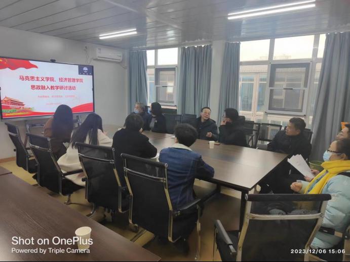 活动以研讨讨论和案例分享为主要形式。来自马克思主义学院和经济管理学院应急管理专业的教师代表们积极参与,分享了自己在教学中融入思政教育的经验和实践。他们强调了思政融入教学对学生综合素质和社会责任感的培养的重要性,并分享了一系列成功案例。马克思主义学院的王四正老师介绍了如何在马克思主义理论课程中引导学生思考经济管理实践中的伦理和道德问题。经济管理学院的教师代表们则分享了如何在经济学和管理学课程中引入马克思主义思想,培养学生的社会责任感和创新能力。