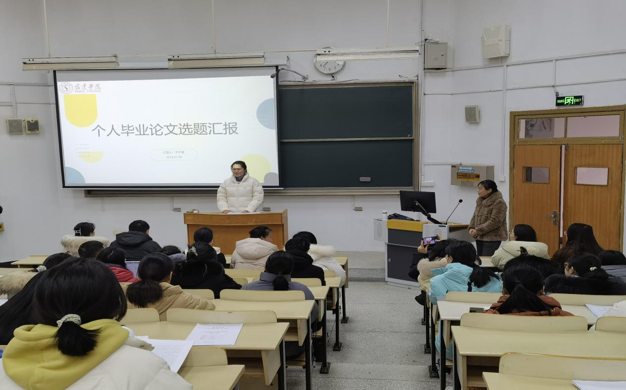 随后,2024届毕业生分组逐一进行了选题汇报。他们分别从文献综述、选题背景、研究目的、研究方法、研究思路、预期成果等方面进行了详细阐述。参会导师对同学们的选题进行了认真审阅和讨论,提出了许多建设性意见和建议。经过充分讨论,最终确定了本届毕业论文的选题。