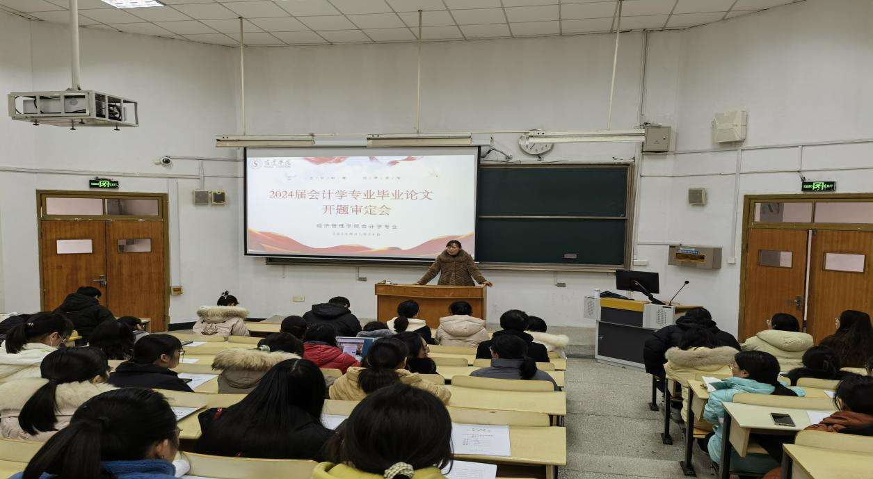 2024年1月10日下午,会计学专业成功组织召开了2024届毕业论文开题审定会。此次会议旨在确保论文选题的科学性、实用性和创新性,进一步提高毕业论文的质量。参加审定会的有会计学教研室主任、专业负责人、导师代表以及2024届全体毕业生。