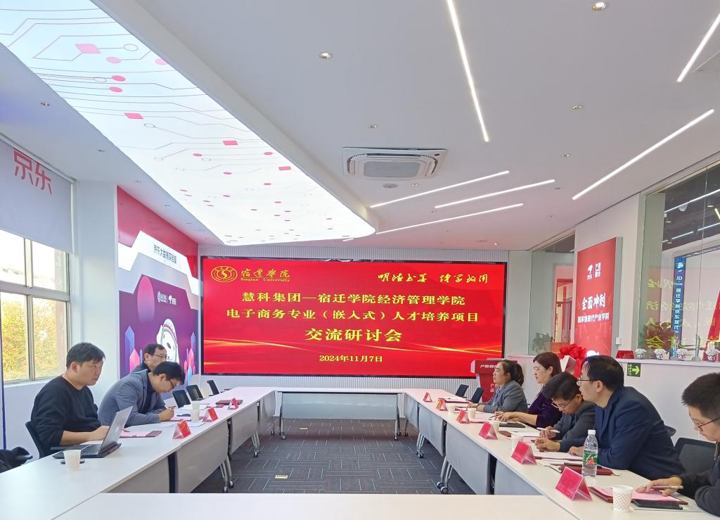 为了进一步提升电子商务专业(嵌入式)人才培养的质量,11月7日下午,慧科集团与宿迁学院经济管理学院电子商务专业(嵌入式)人才培养项目研讨会在京东产教融合基地二楼会议室顺利召开。经济管理学院院长肖艳、副院长许忠荣以及电子商务系部分教师参加会议,会议由学院副院长姜丽丽主持。