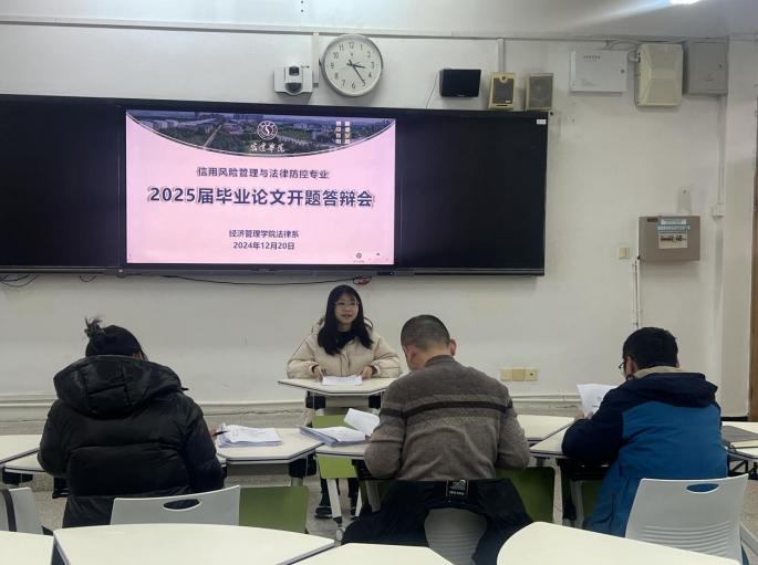 为提高2025届毕业论文撰写质量,确保毕业论文选题及研究设计科学合理,法律系信用风险管理与法律防控专业根据学院2025届本科毕业论文工作安排,于2024年12月20日举行2025届毕业论文开题答辩。本次答辩分4组进行,共有50名毕业生参加答辩。