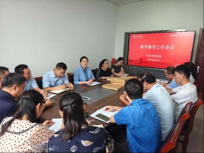为强化督导、推动教学创新,9月4日,经济管理学院召开2025年秋季学期教学督导工作会议。院长肖艳出席并讲话,全体教学督导组成员参会,会议由副院长姜丽丽主持。