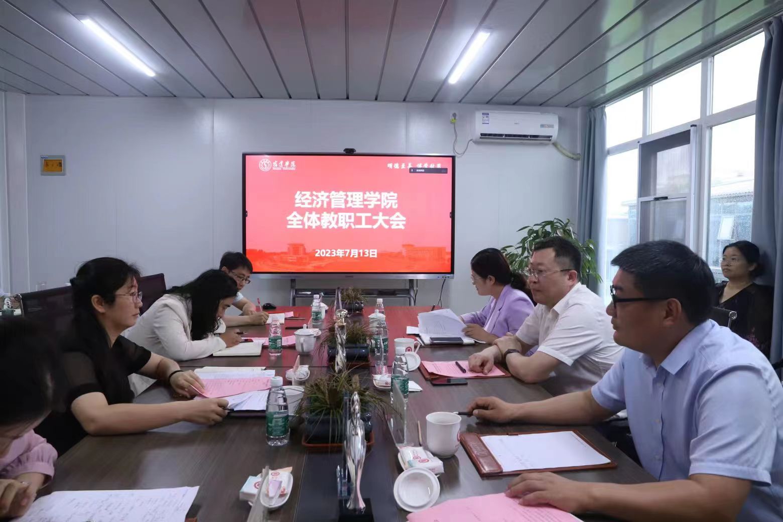 7月13日上午,经济管理学院通过线上线下相结合方式召开全体教职工大会,校党委常委、副校长童毛弟出席会议并致辞。会议由经济管理学院党委副书记(主持工作)马卫东教授主持。