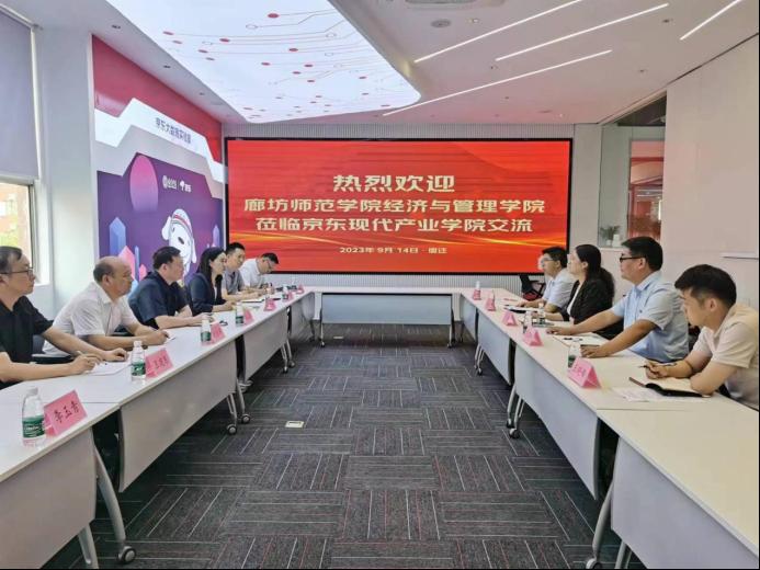 9月14,廊坊师范学院经济与管理学院党委书记杨立新和院长周爱玲一行到访调研,我院在京东现代产业学院召开座谈会,院长肖艳、党委副书记(主持工作)马卫东、副院长许忠荣参加会议。