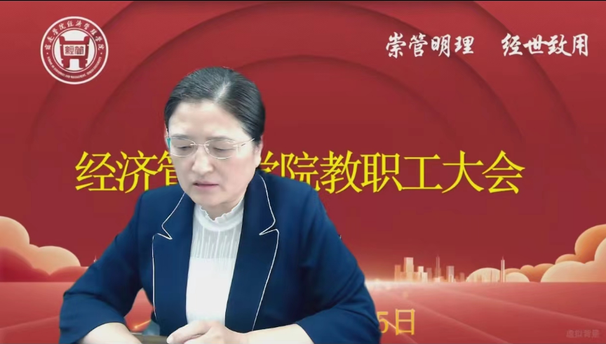 10月15日上午,经济管理学院召开全体教职工大会,会议由经济管理学院党委副书记沈姣主持。