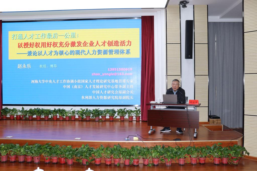 讲座中,赵教授以“打通人才工作最后一公里:以授好权用好权充分激发企业人才创造活力”为主线、以中央人才工作的会议精神为引领,分别从人才工作体系与人才工作的最后一公里、授好权与用好权和企业的人才工作等方面进行了深入浅出、引人入胜的讲授。
