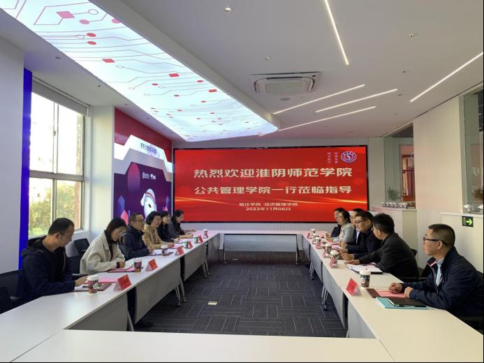 11月6日上午,淮阴师范学院公共管理学院领导班子、系主任及专业负责人一行6人莅临我院开展产教融合与人才培养调研工作。宿迁学院经济管理学院院长肖艳、党委书记副马卫东(主持工作)、教务处副处长王兴、经济管理学院副院长许忠荣、姜丽丽及各系主任参加调研交流。