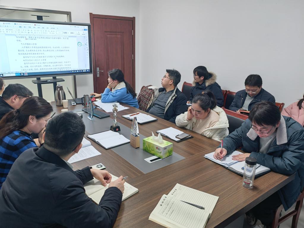 1月2日下午我院在202会议室召开学习《宿迁学院绩效工资实施方案》专项会议。会议由院长肖艳主持,院领导班子,行政办,教务办、科研办参会。