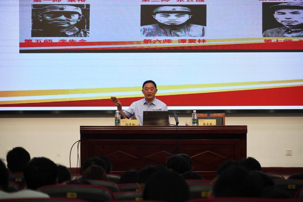 6月6日下午,经济管理学院在求索楼报告厅举办弘扬“铁军精神”主题讲座,邀请宿迁市新四军研究会会长孙其松授课,讲座由经管院党委副书记(主持工作)马卫东主持。
