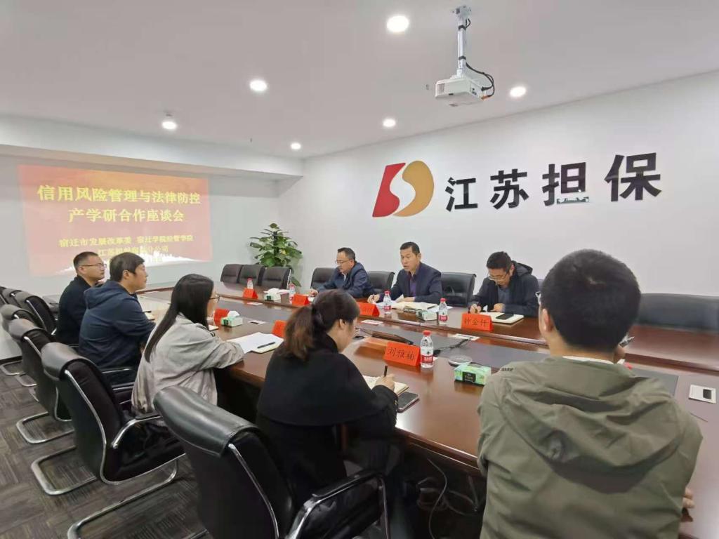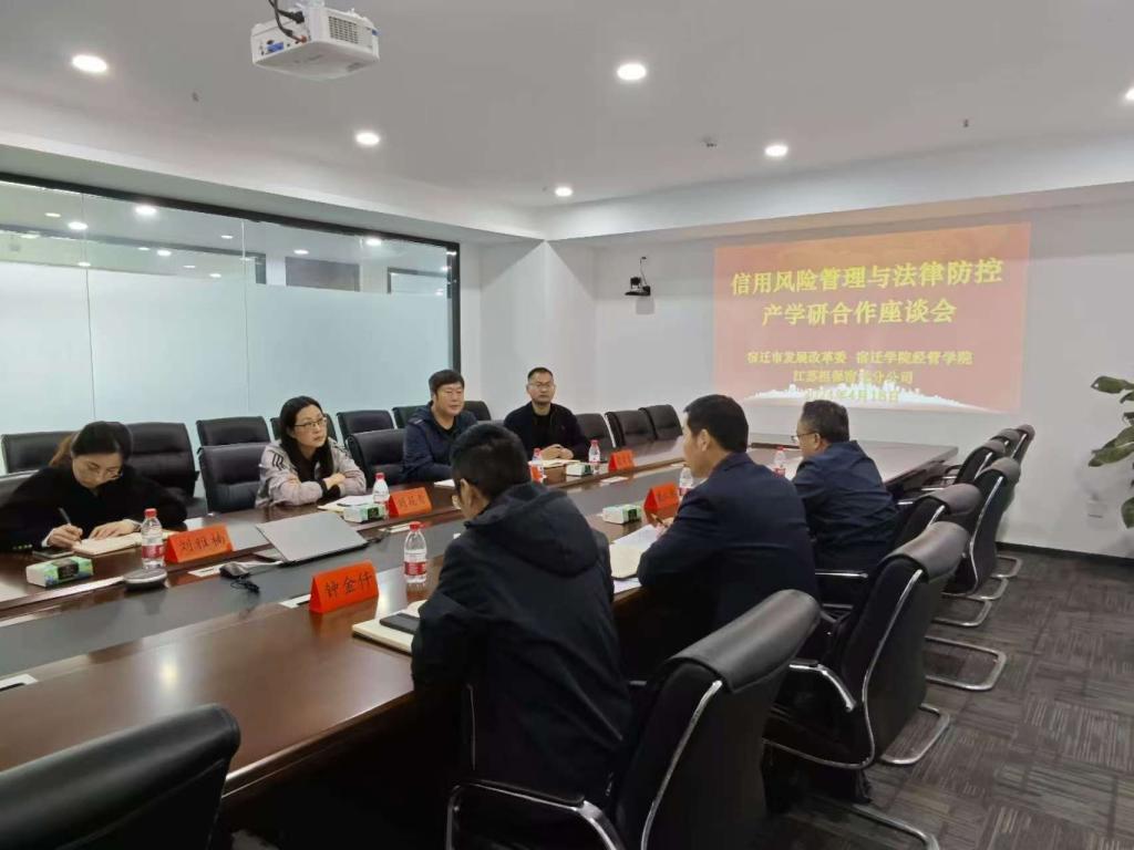 江苏省信用融资担保有限公司宿迁分公司总经理李全胜介绍了宿迁市信用融资担保行业的发展状况以及金融、类金融机构对复合型法治人才的广泛需求,对我院信用风险管理与法律防控专业的人才培养定位、课程设计、实践教学、就业创业等提出多项建议。市发展改革委社会信用处处长刘筱青介绍了宿迁市经济信用体系建设整体情况和近年信用监管与信用服务改革举措,就我院信用风险管理与法律防控专业的服务面向、课程体系给出意见、建议。此外,双方还举行了专业教学实践基地揭牌仪式。