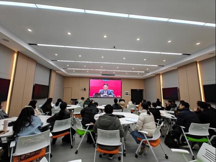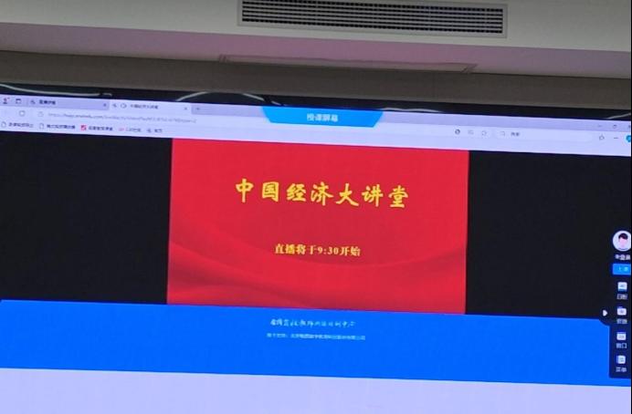 为深入学习习近平新时代中国特色社会主义思想,贯彻落实党的二十大、二十届三中全会精神,系统阐释、解读和讲述习近平经济思想,深度解读中国经济政策与实践,推动经济学专业教育与国家经济发展融合,深化产教融合协同育人,教育部高等教育司于12 月 4 日举办中国经济大讲堂。按照学校部署安排,我院积极响应,组织师生在线观看中国经济大讲堂线上直播。此次大讲堂由原世界贸易组织副总干事、商务部原副部长易小准主讲,对外经济贸易大学校长赵忠秀教授主持。