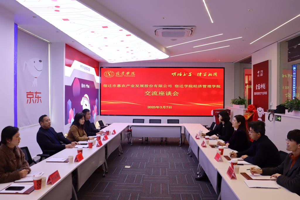 3月7日,宿迁市惠农产业发展股份有限公司董事长杨鑫艳、总经理佘少微等一行来经济管理学院洽谈合作事宜。经济管理学院院长肖艳、行政协助吴英晶等参加座谈,会议由副院长许忠荣主持。