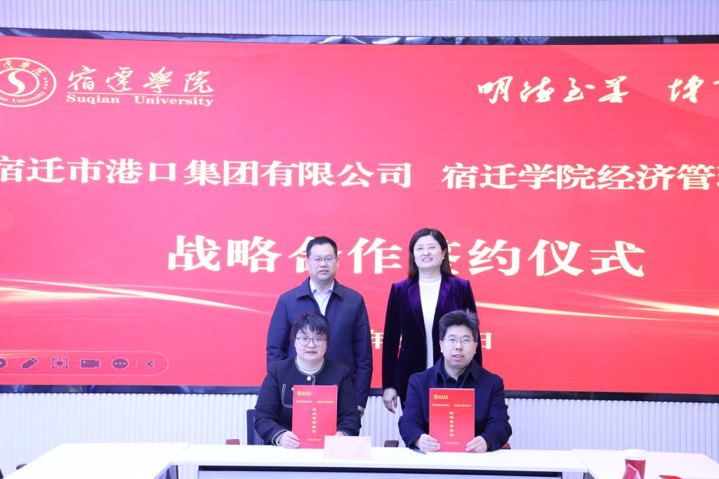 尤勇详细介绍了宿迁市港口集团的战略布局。他表示,集团以“对外开放窗口、物流集聚高地、港产融合平台”为发展定位,锚定“打造国内一流枢纽港口”目标,着力构建港口运营、现代物流、临港经济三大业务板块,推进港口、铁路、保税“三位一体”多式联运服务网络建设,加速实现转型发展,为“好运宿迁”建设提供强有力支撑。他指出,当前正值集团转型发展的关键阶段,亟需高校在科技创新、管理优化、人才培养等方面赋能助力,期待与经济管理学院建立全方位、深层次的战略合作关系。