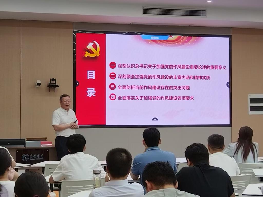 6月23日下午,校党委常委、副校长童毛弟在经济管理学院,以“锤炼过硬作风,扛起大院担当”为主题讲授专题党课,学院全体领导班子、科级干部、党支部书记、系主任、辅导员及学生代表参加学习。