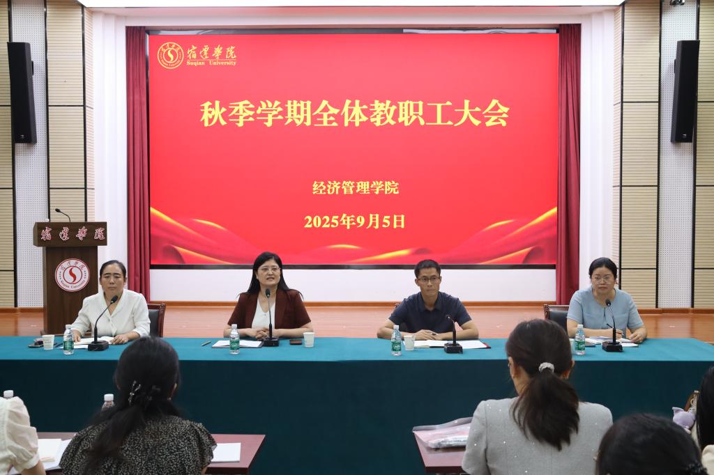 9月5日下午,经济管理学院在新图学术报告厅召开秋季学期全体教职工大会。学院党政领导班子成员及全体教职工参加会议。会议围绕新学期工作布局、发展态势分析、重点任务落实等方面展开交流和动员。