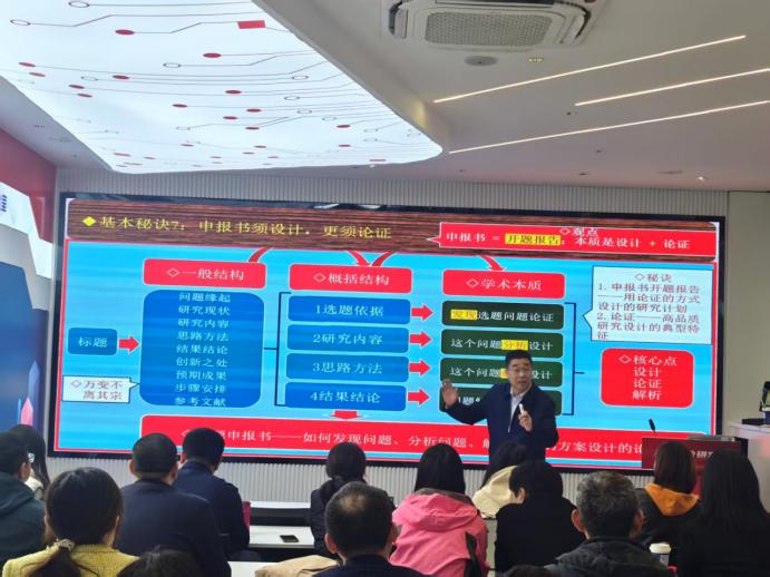 在互动交流阶段,多位教师携带个人课题申报书现场请教,杨润勇研究员逐一进行细致分析并提供针对性改进建议,现场交流气氛热烈。参会教师普遍反映,本场讲座内容扎实、指导具体,长达六个多小时的讲解不仅激发了大家的申报热情,也深化了对课题选题与方法运用的理解,为后续研究指明了方向。