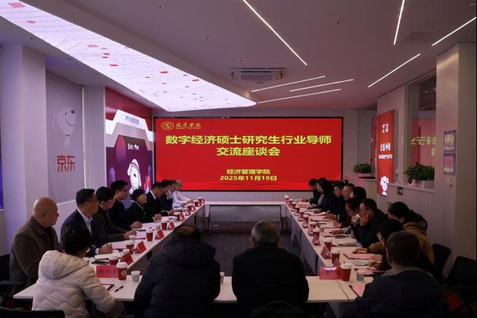 11月19日下午,经济管理学院成功在京东现代产业学院二楼会议室举办数字经济行业导师交流座谈会。本次座谈会邀请了来自宿迁市科技信息中心、洋河、苏北粮油、昆仑物流、陆港物流、楚润数字科技、人保宿迁分公司、蒙牛宿迁分公司等知名企业的9名研究生行业导师开展交流座谈。