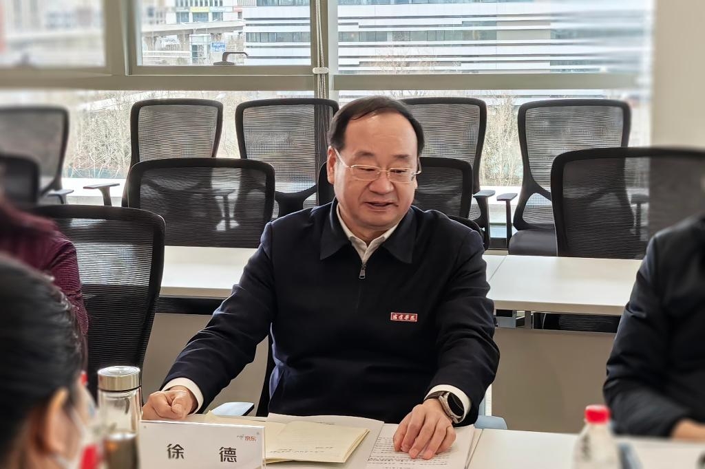 一年春作首,万事行为先。为服务和加快推进京东现代产业学院建设,深化校企合作,全面推进江苏教育现代化宿院新实践开好头、起好步,打造新时代产教融合新标杆,2月2日,校党委书记徐德,校党委常委、副校长郭照冰带队赴北京京东集团总部考察交流,共商新一年合作大计。考察团一行受到京东集团热情接待,京东集团党委书记缪晓虹,副总裁朱可轩、吴洁、冯全普、张以林及京东相关部门负责人陪同调研。