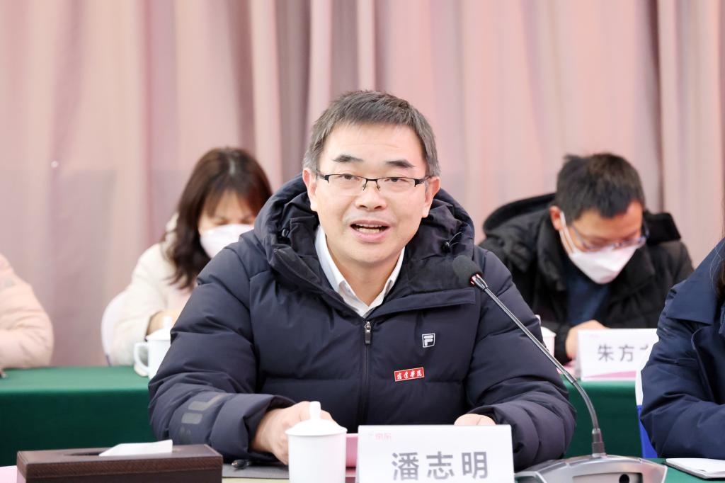 潘志明校长介绍了学校的基本情况,转制以来,学校各项工作实现稳中快进,招才引智成果丰硕,内涵建设稳步提升,服务地方扎实有效,京东现代产业学院成功获批省级重点产业学院。潘志明校长指出,回首与京东合作的12年发展历程,我校与京东集团在专业共建、教学资源建设、产教融合基地建设、创新创业教育、产学研合作等方面的发展成就有目共睹。为更好地把产业学院做细做实,双方要进一步完善管理体制机制,进一步创新人才培养模式、提升专业建设质量、建设高水平师资队伍和搭建产学研合作平台。