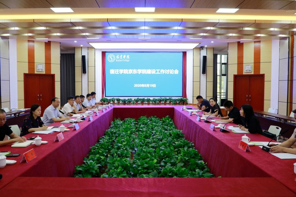 与会人员愉快地回顾了我校与京东集团的合作历程,并就《宿迁学院京东学院建设方案(建议稿)》,重点围绕宿迁学院京东学院的办学目的和宗旨、办学方向和定位、办学组织治理架构、基础设施保障、实施步骤等进行了深入交流,对宿迁学院京东学院充满期待和信心。