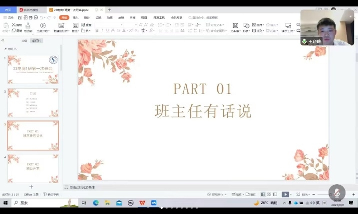 本次会议共五项议程,第一项班主任王晓峰老师首先从三个方面“毕业生”、“新来的”、“缘分”寻找与同学们的共同点,进一步拉近与学生间的关系。随后重点阐述了对电子商务专业的理解,帮助学生加深对本专业的认识与了解。第二项班助分享,班助作为新生和老师之间的桥梁,起着重要的协调沟通作用。在新生未来的学习和生活中能够为同学们提供帮助并且做出一些思想引导。可以帮助大家更快、更好的适应大学的新生活。五位班助分别介绍了自己,以及各自负责的工作领域。随后重点传达了学校、学院的各项规章制度、纪律问题、英语四级的重要性、转团关系、校园活动以及校园生活等。第三项议程,辅导员余佳老师首先作了简单自我介绍以及向大家说明了辅导员的相关工作内容,随后重点从暑期防诈骗(国家反诈app,学费)和安全教育(夏季水边)进行宣传,用一些可爱的昵称,让新生放下对辅导员的恐惧,展示了辅导员的亲和力。最后,也向学生表明,有问题要及时找辅导员沟通,她一定会竭力解决。第四项议程:新生自我介绍,这一环节是老师和班助最为期待的,50位同学纷纷都开启摄像头在线与老师会面,各自介绍了自己家乡、性格、兴趣爱好以及对大学四年的憧憬。透过屏幕可以看出同学们对新学校、新生活的向往。第五项议程:新生自由提问,同学们分别从军训、宿舍、校园环境、电子商务专业课程、就业方向等方面提出疑问,辅导员、班主任和班助为学生们耐心解答。本次班会长达2小时,中途无一人退出,最终完美结束。