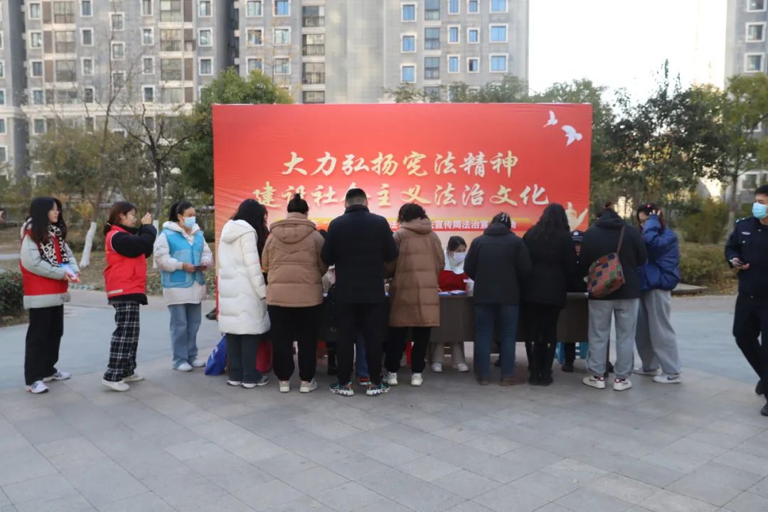 为加强宪法学习宣传,弘扬宪法精神,维护宪法权威。2023年12月2日上午,经济管理学院分团委在宿迁市项里街道隆城盘古小区开展宪法知识宣传、居民普法活动。来自项里街道社区党委、隆城盘古小区党支部、宿迁学院法制办公室、宿迁学院团委以及经济管理学院分团委等数十名志愿者参与了活动。活动中,志愿者向社区居民发放了国家宪法日手册,提供基础法律问题科普,进一步提高了社区居民法律素养。同时,经济管理学院法学社的志愿者们向社区居民开展宪法知识宣讲,介绍了法律案件,科普了法律知识。
